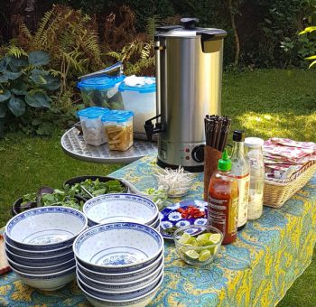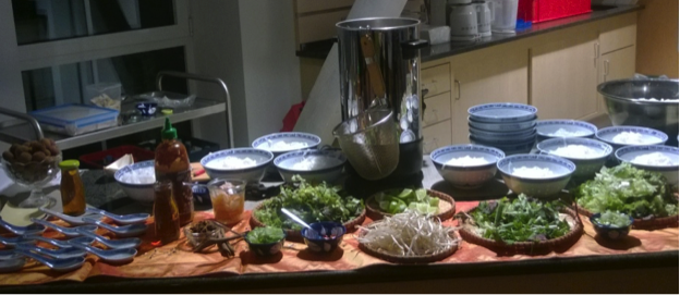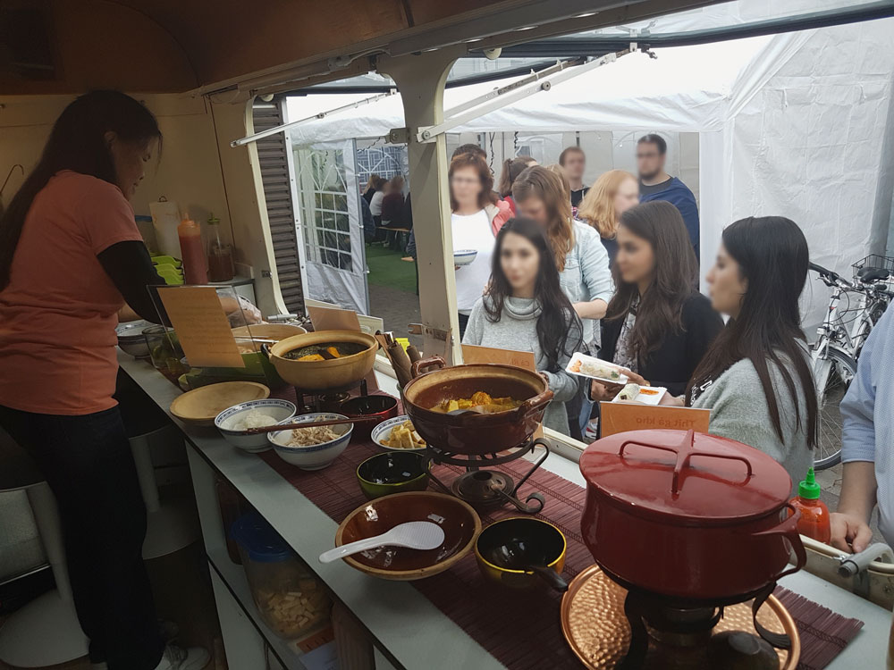 Zu Hause, für Konferenzen oder andere Anlässe, »bauen« wir ein kleines vietnamesisches Straßenrestaurant wie in Nordvietnam für Sie auf. So kann jeder sein Phở persönlich nach seinem Geschmack bestücken – Scharf oder eben gerade nicht, viel oder kein Koriander...