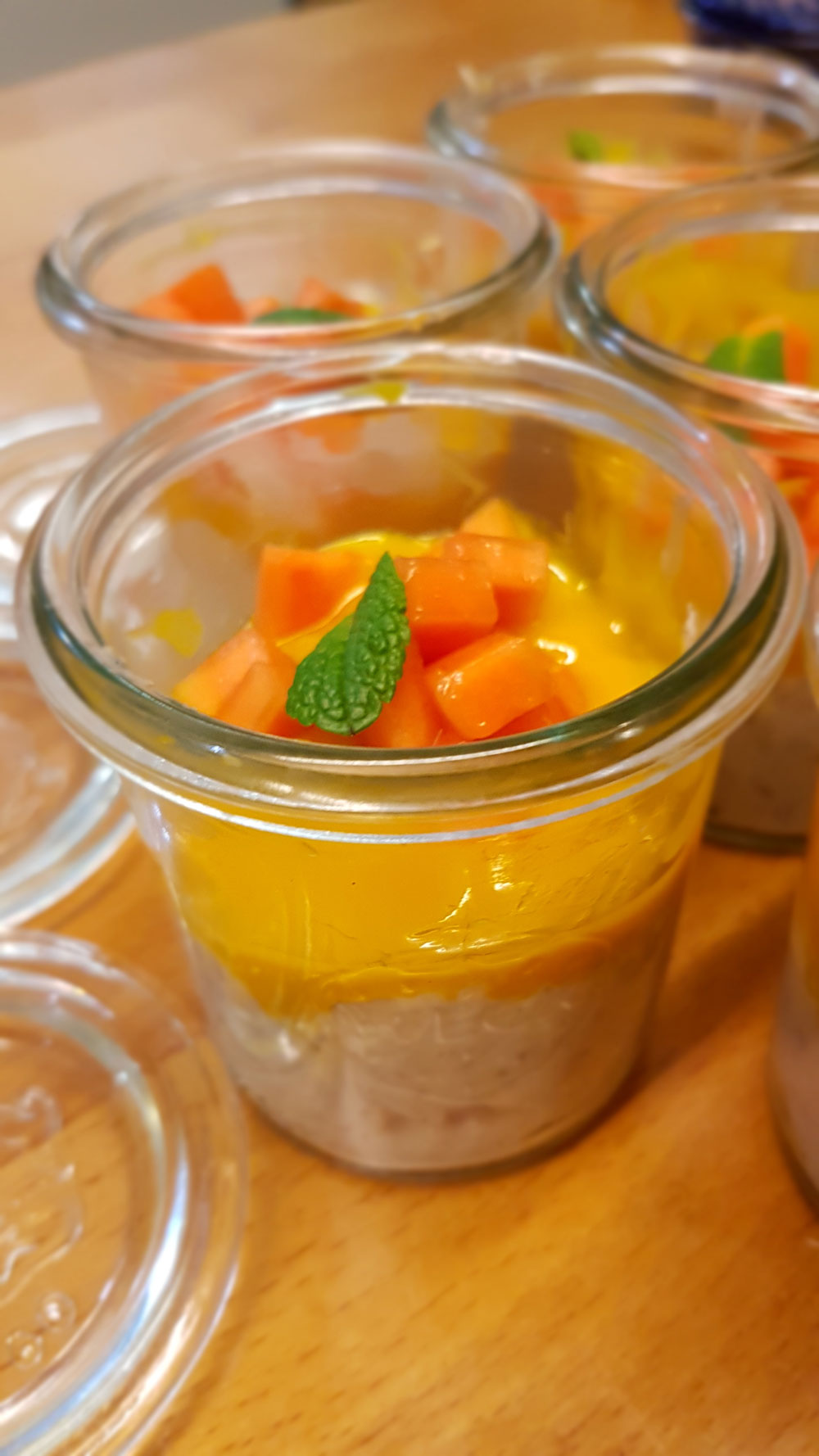 Wir bauen bei Ihnen zu Hause kleinere »Stationen« (für je 4-5 Personen) mit Saucen, Pickles, Dips, Kräutern, etc. auf. Schüsseln, Besteck (Stäbchen und passende Löffel) sind dabei.